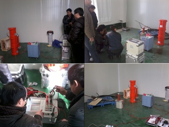 李工到達現場后,開始詳細介紹我公司的YTC850-75kVA/25kV變頻串聯諧振試驗成套裝置。介紹完畢后,李工又詳細的講解,以及手把手的帶客戶做實驗,直至實驗順利完成。隨后,李工又帶領客戶做了其余十幾個設備的實驗及安裝調試。